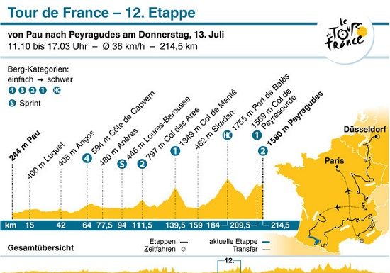 12. Etappe, Pau – Peyragudes, 214,5 Km