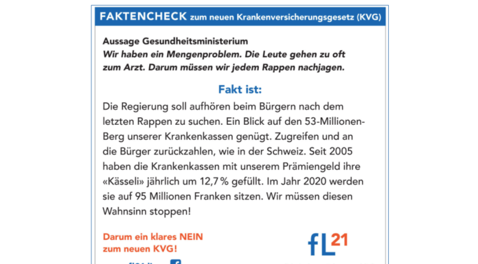 In diversen Aussendungen und bezahlten Beiträgen der Referendumsgruppe fl21 werden leider bewusst oder unbewusst Falschinformationen verbreitet, die es richtigzustellen gilt. Neustes Ziel der fl21...