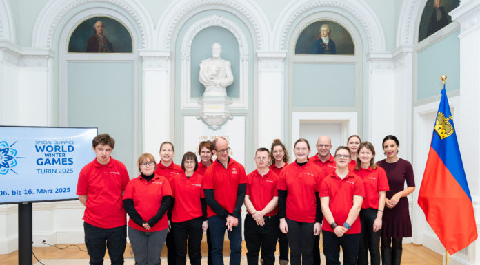 Sportministerin Dominique Hasler empfing am Donnerstag, 16. Januar 2025, die Delegation von Special Olympics Liechtenstein im Fürst-Johannes-Saal im Regierungsgebäude und verabschiedete sie zusammen mit...