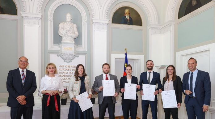 Justizministerin Graziella Marok-Wachter hat am Donnerstag, 29. Juni 2023, fünf Absolventinnen und Absolventen der Rechtsanwaltsprüfung ihre Diplome überreicht.
