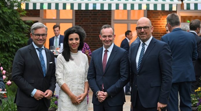 Regierungschef Risch und Aussenministerin Hasler beim Sommerempfang der Liechtensteinischen Botschaft in Berlin